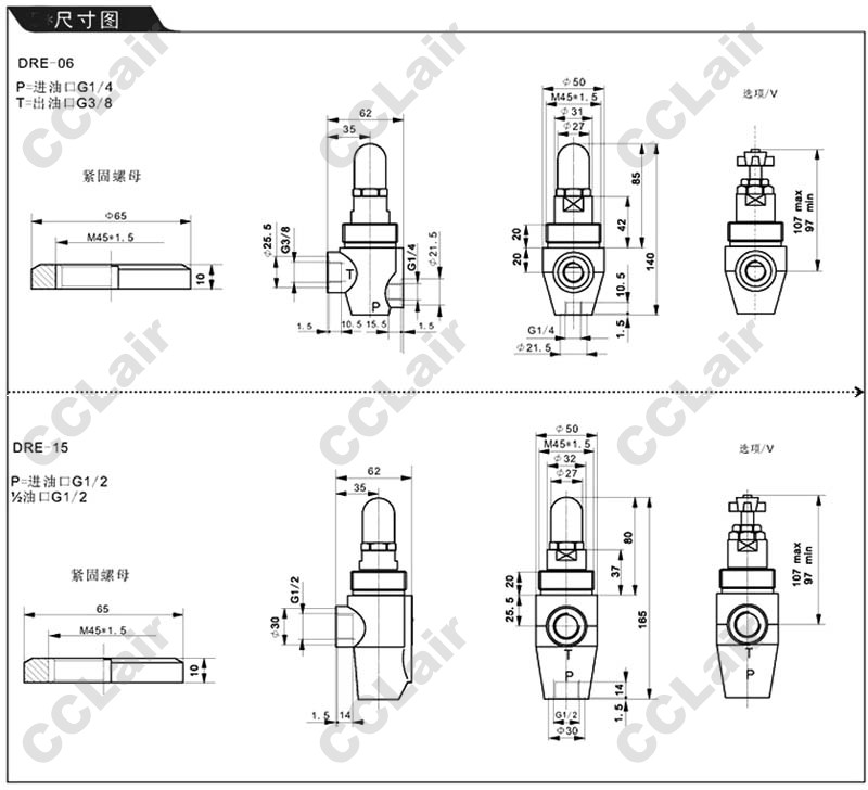 DRE-06/50,DRE-06/100,DRE-06/210,DRE-06/350,DRE-15/50,DRE-15/75,DRE-15/150,DRE-15/250,直動式溢流閥 |