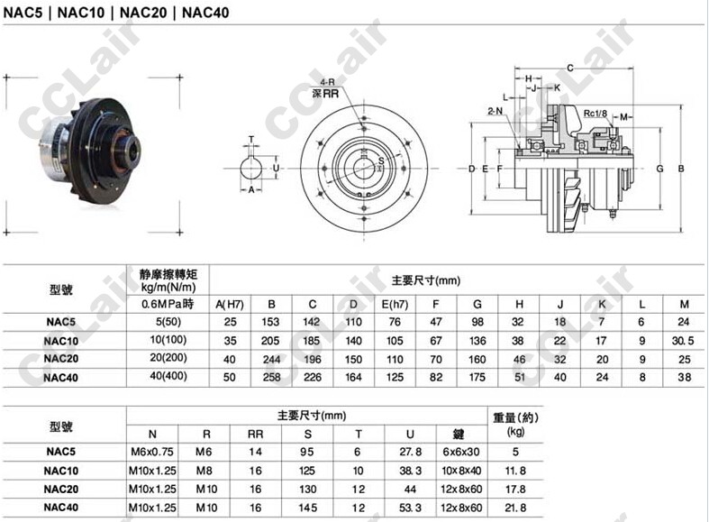 NAC5,NAC10,NAC20,NAC40,通軸式離合器,CCLair