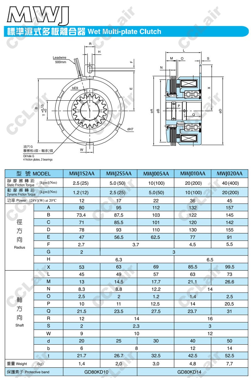 MWJ1S2AA,MWJ2S5AA,MWJ005AA,MWJ010AA,MWJ020AA,濕式多板剎車器 |