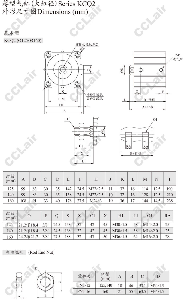 KCQ2A125,KCQ2A140,KCQ2A160,KCQ2A125-100,KCQ2A140-175,KCQ2A160-125,KCQ2A140-40,ARK薄型氣缸