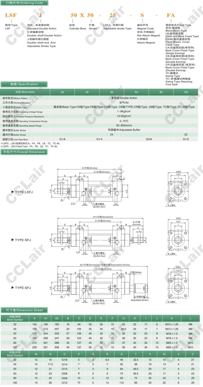 LSF32,LSF40,LSF50,LSF63,LSF80,LSF100,LSF100×200,LSF63×200,LSF40×100,LSF80×100,標(biāo)準(zhǔn)氣缸 |