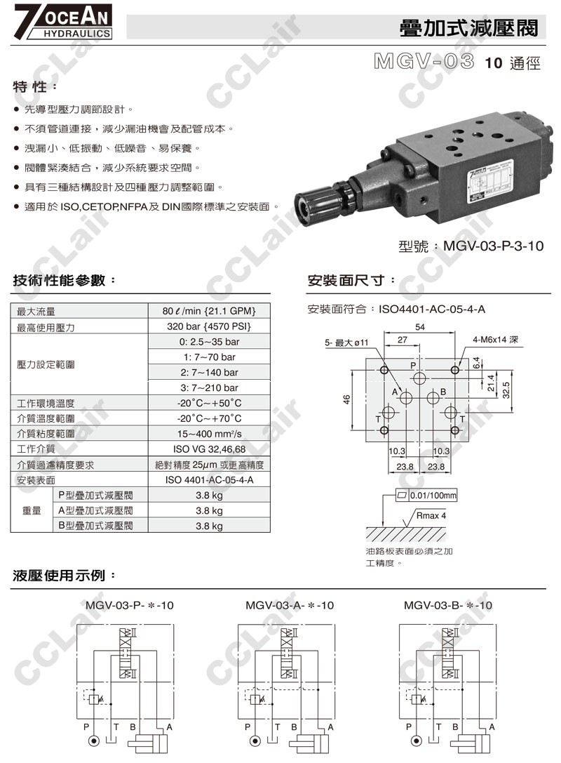 型號: MGV-03-P,MGV-03-A,MGV-03-B,MGV-03-P-0-10,MGV-03-P-3-20,MGV-03-A-2-20,7OCEAN七洋疊加式壓力減壓閥