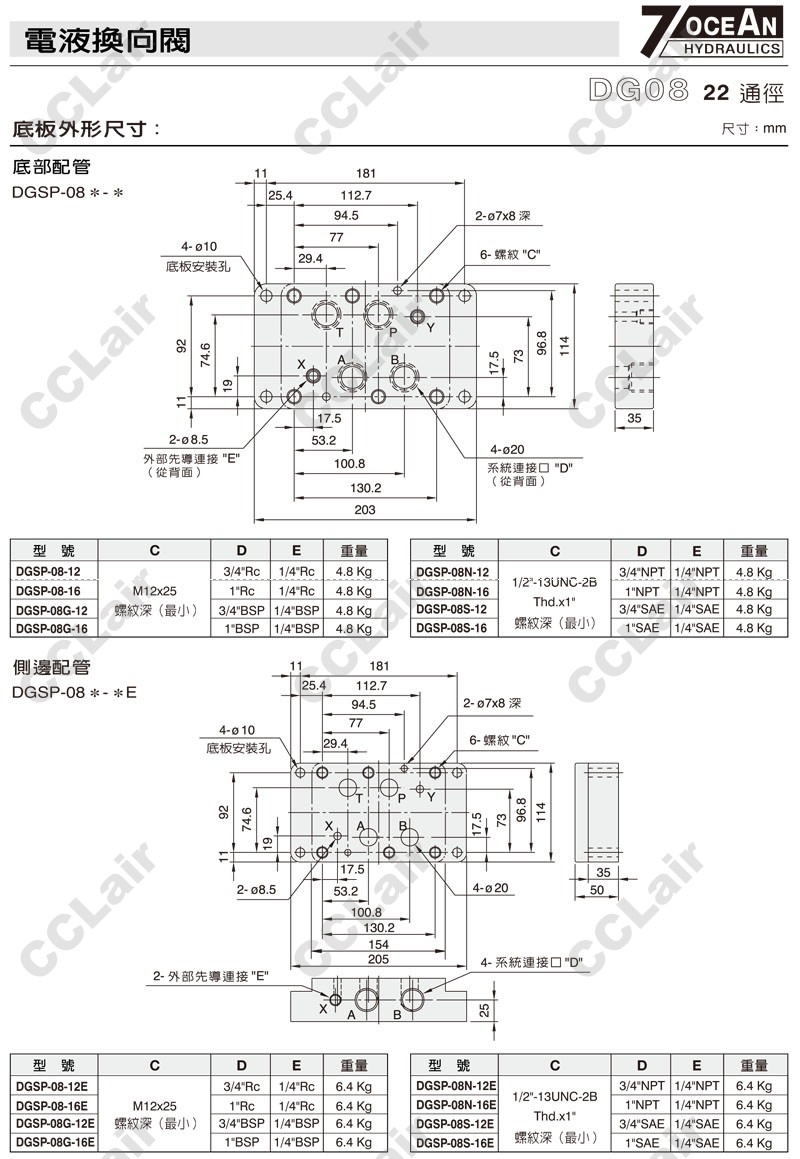 DG08-E1,DG08-E2,DG08-E1-11BL-ET-A110-DN-82,DG08-E2-11BL-E-A120-DN-82,7OCEAN七洋電液換向閥