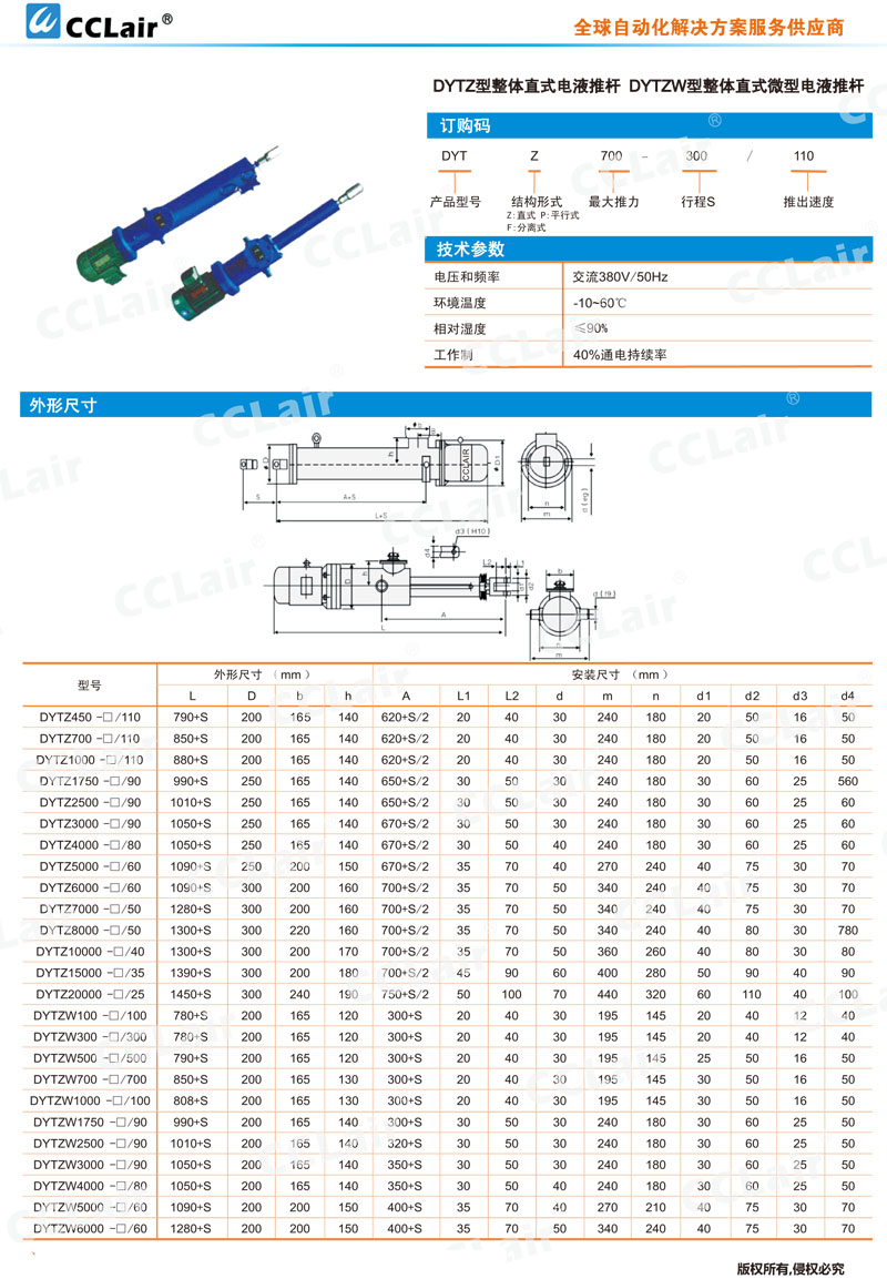 DYTP6000-□/60,CCLair DYTP7000-□/50,DYTP8000-□/50,DYTP10000-□/40,DYTP15000-□/35,