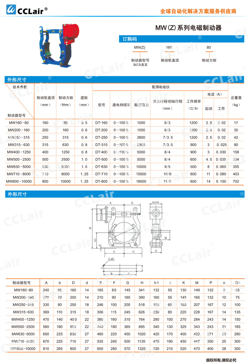 MWZ160,MWZ200,MWZ250,MWZ315,MWZ400,MWZ500,MWZ630,MWZ710,MWZ800,MWZ800-10000,電磁制動器