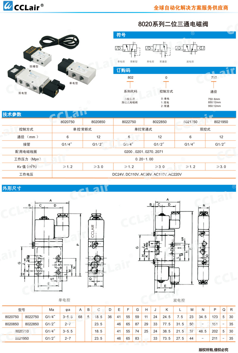 8020750,8020850,8022750,8022850,8021750,8021950,二位三通電磁閥