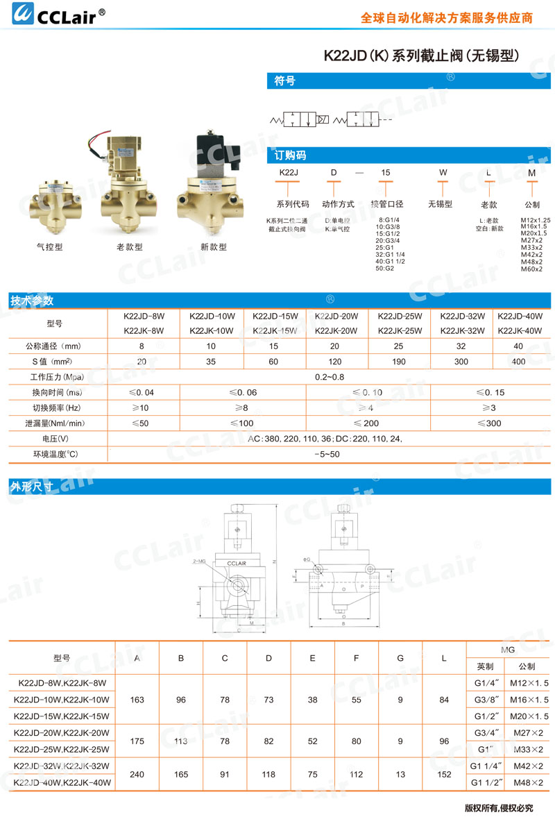 K22JD-8W,K22JD-10W,K22JD-15W,K22JK-20W,K22JK-25W,K22JK-32W,K22JK-40W,K22JK-50W,二位二通截止式換向閥
