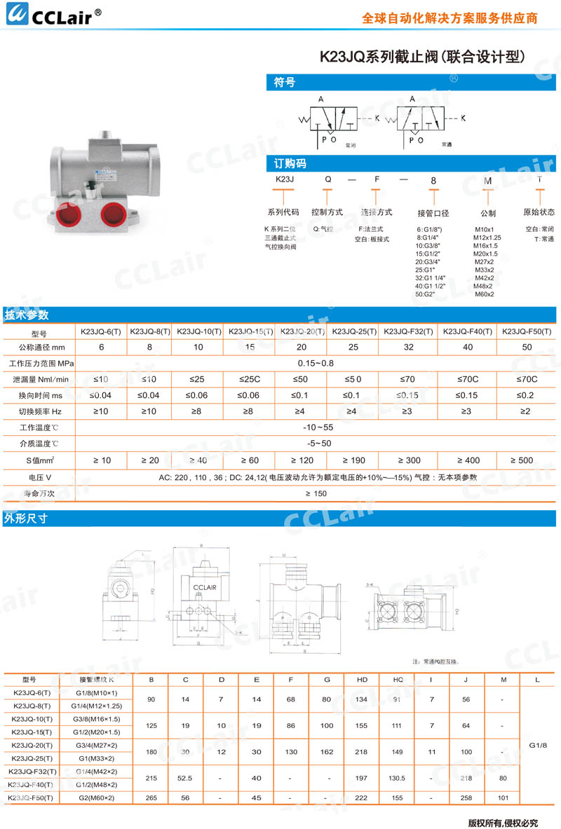 K23JQ-6,K23JQ-10,K23JQ-15,K23JQ-20T,K23JQ-25T,K23JQ-F32T,K23JQ-F40,K23JQ-F50,二位三通截止式氣控?fù)Q向閥