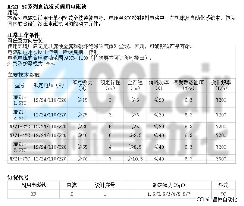 MFZ1-1.5YC,MFZ1-2.5YC,MFZ1-3YC,直流濕式閥用電磁鐵,昌林直流濕式閥用電磁鐵,直流濕式閥用電磁鐵生產(chǎn)廠家,直流濕式閥用電磁鐵價格,