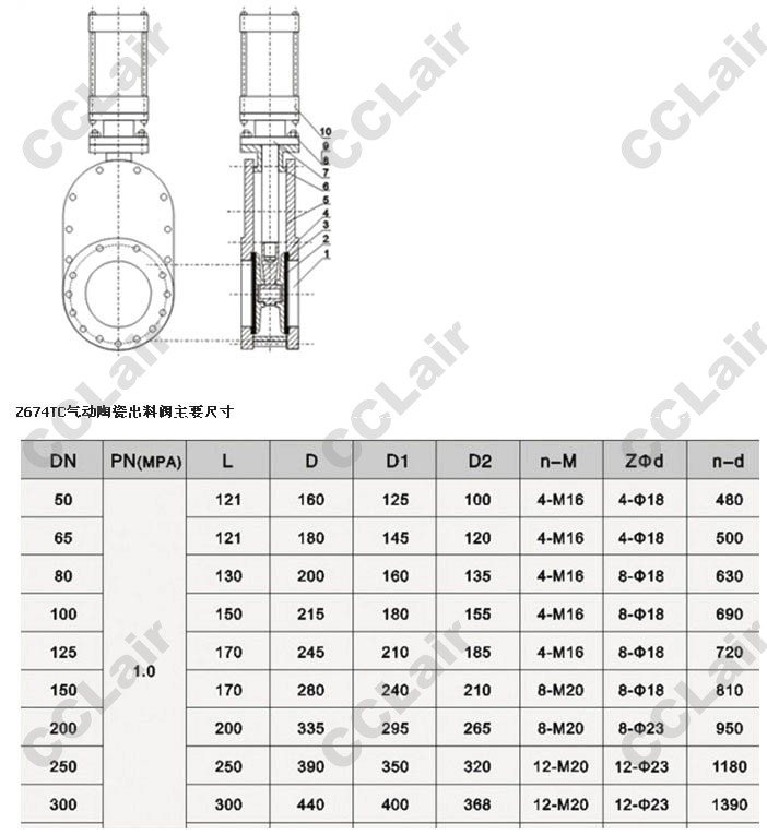 Z674TC-16C-DN50,Z674TC-10C-DN65,Z674TC-16C-DN100,Z674TC-10C-DN125,Z674TC-10C-DN300,氣動陶瓷出料閥