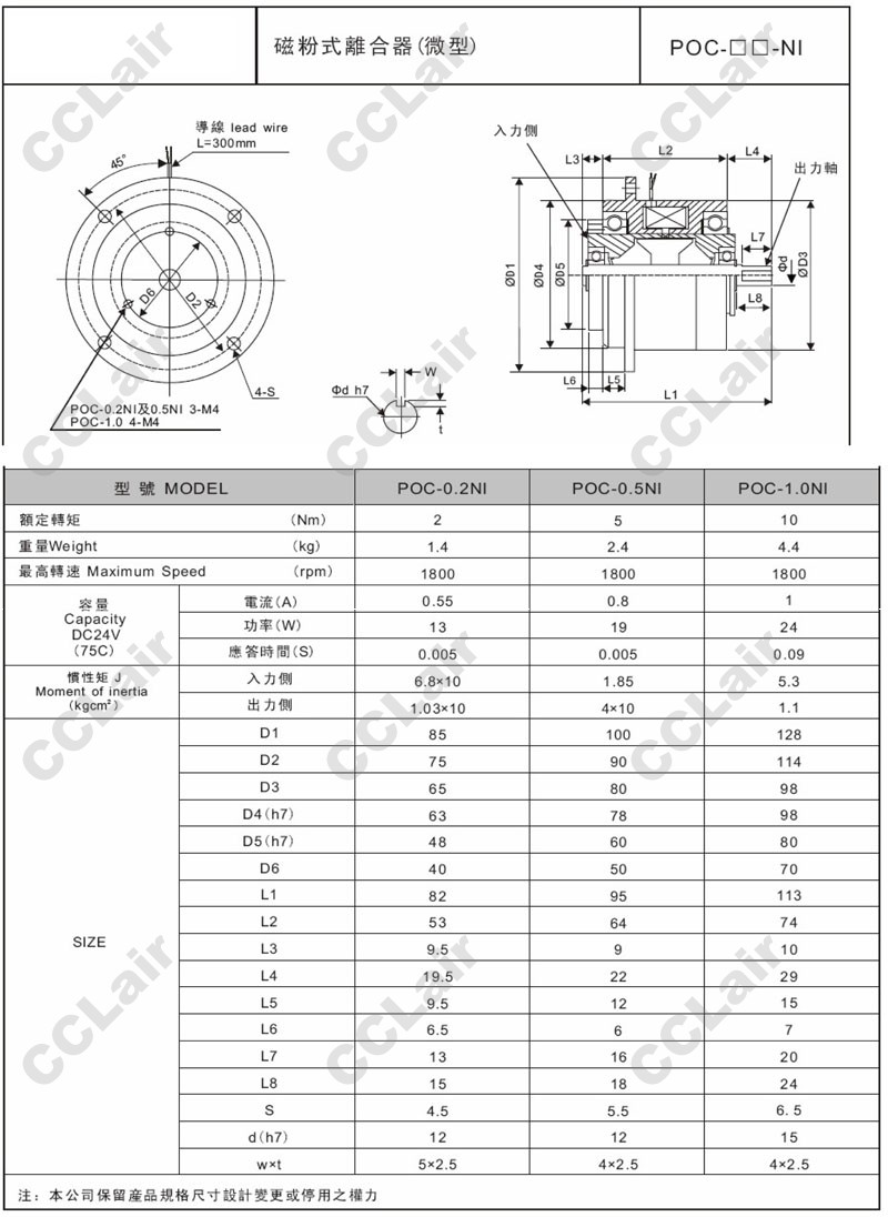 POC-0.2NI,POC-0.5NI,POC-1.0NI,微型磁粉式離合器