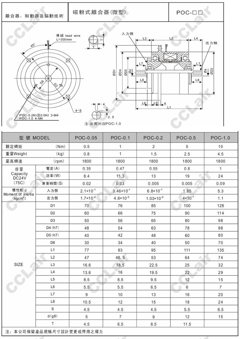 POC-0.05,POC-0.1,POC-0.2,POC-0.5,POC-1.0,微型磁粉式離合器