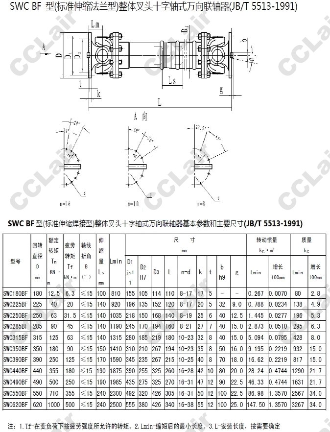 SWC180BF,SWC225BF,SWC285BF,SWC315BF,SWC390BF,SWC440BF,SWC550BF,SWC620BF,法蘭式萬向聯(lián)軸器