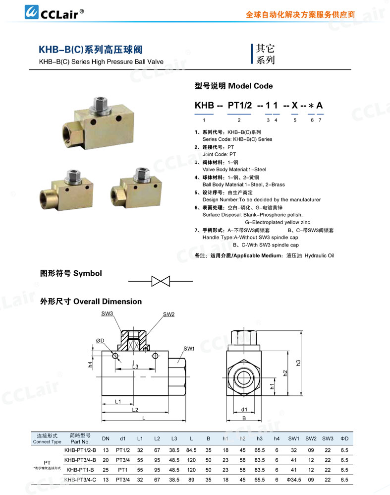 KHB-PT1/2-B,KHB-PT3/4-B,KHB-PT1-B,KHB-PT3/4-C