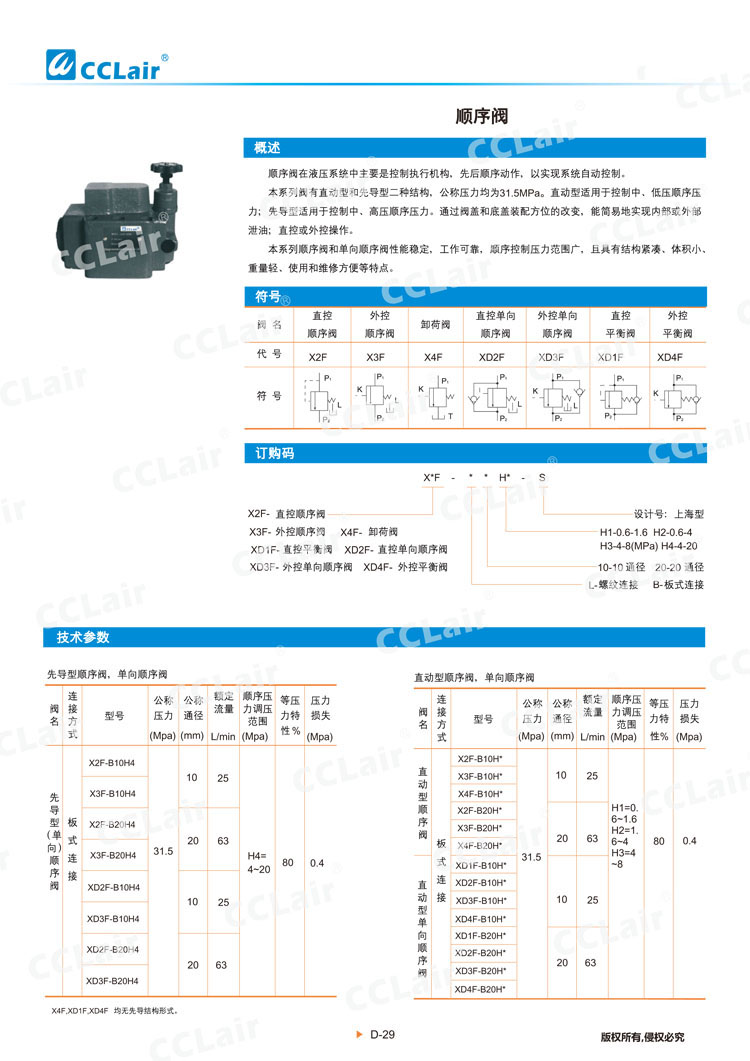 XD1F-L10H1-S,XD2F-L10H1-S,XD3F-L10H1-S,XD2F-L20H1-S,XD3F-L20H1-S,XD4F-L20H1-S,直動型單向順序閥