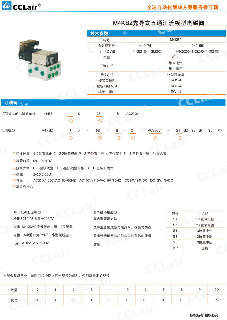 M4KB210-08,M4KB220-08,M4KB230-08,M4KB240-08,M4KB250-08,先導式五通匯流板型電磁閥
