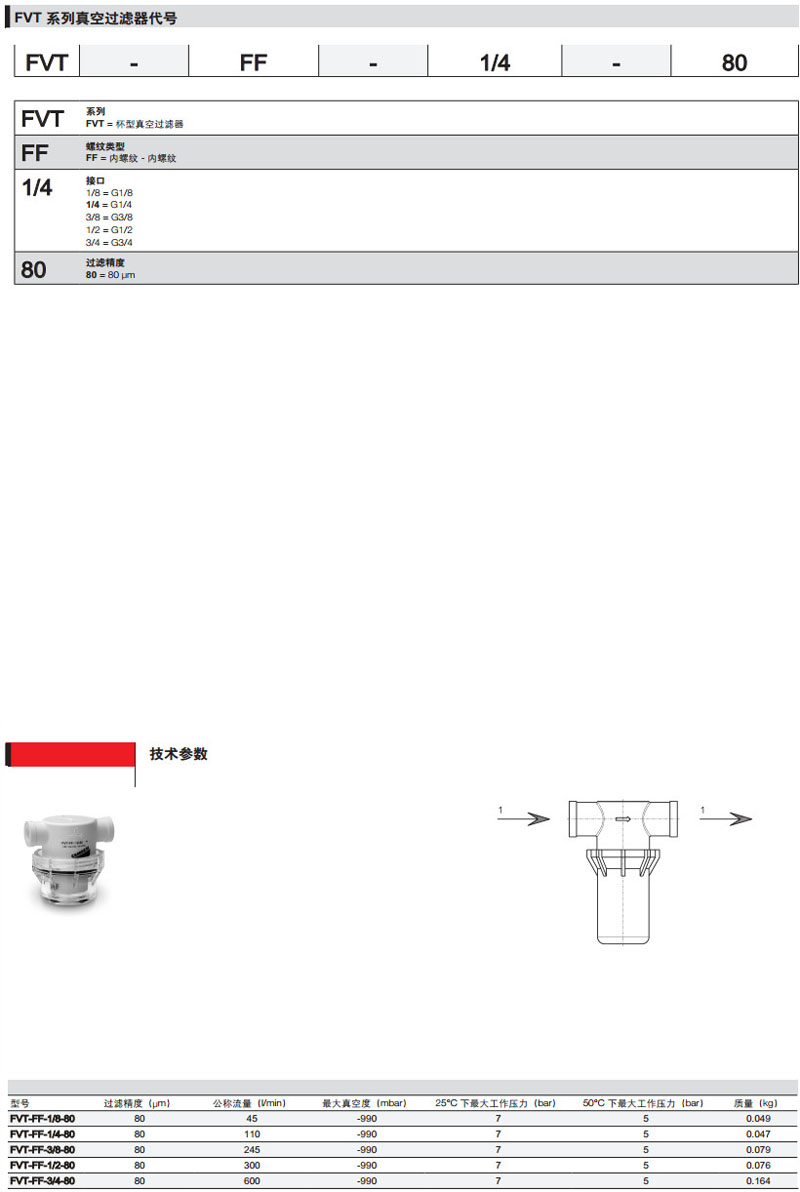 FVT-FF-1/8-80,FVT-FF-1/4-80,FVT-FF-3/8-80,FVT-FF-1/2-80,FVT-FF-3/4-80,camozzi杯型真空過濾器