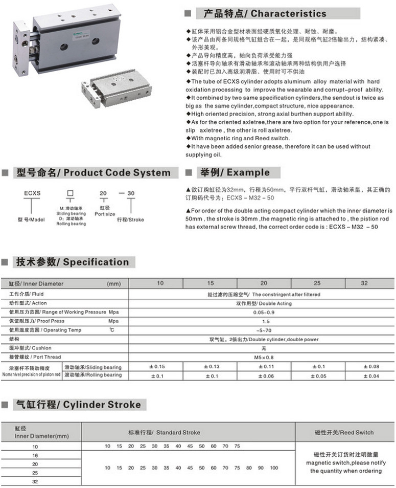 ECXSM10-10,ECXSM16-20,ECXSM20-25,ECXSM25-30,ECXSM10-50,ECXSM16-70,平行雙桿氣缸 |