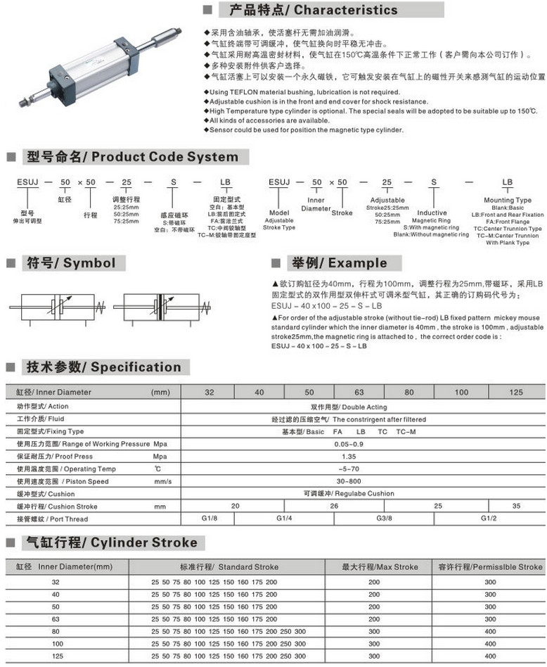 ESUJ-32*50-S,ESUJ-32*75-S,ESUJ-32*80-S,ESUJ-32*100-S,ESUJ-32*125-S,ESUJ-32*150-S,ESUJ-32*160-S,ESUJ-32*175-S,ESUJ-32*200-S,