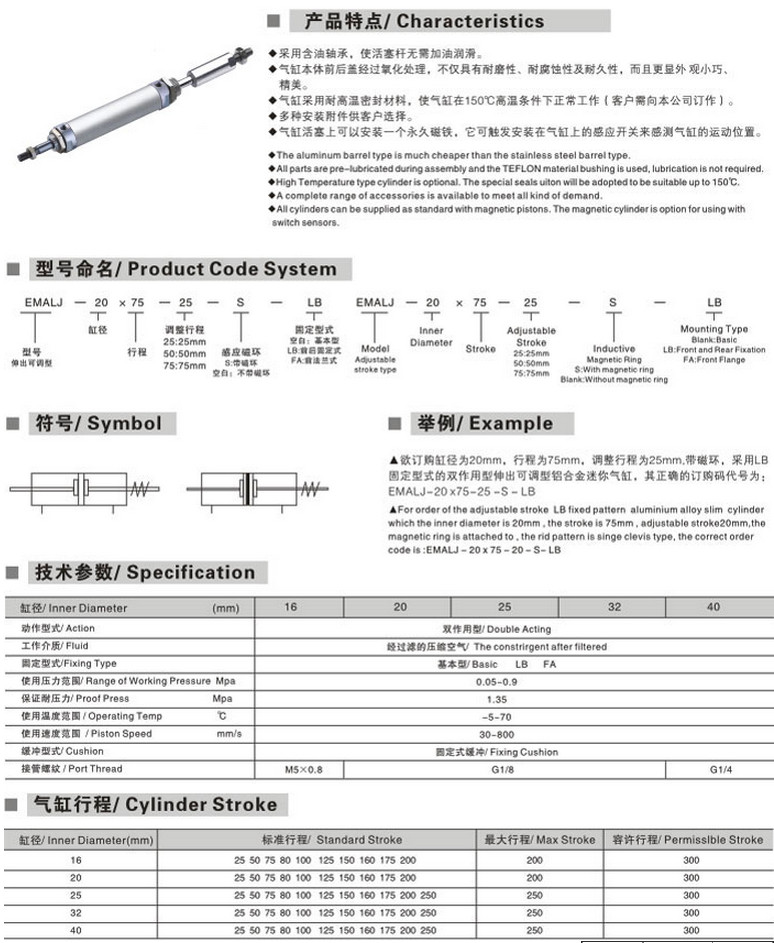 EMALJ-CM16*25,EMALJ-CM20*50,EMALJ-U32*80,EMALJ-U25*50 |