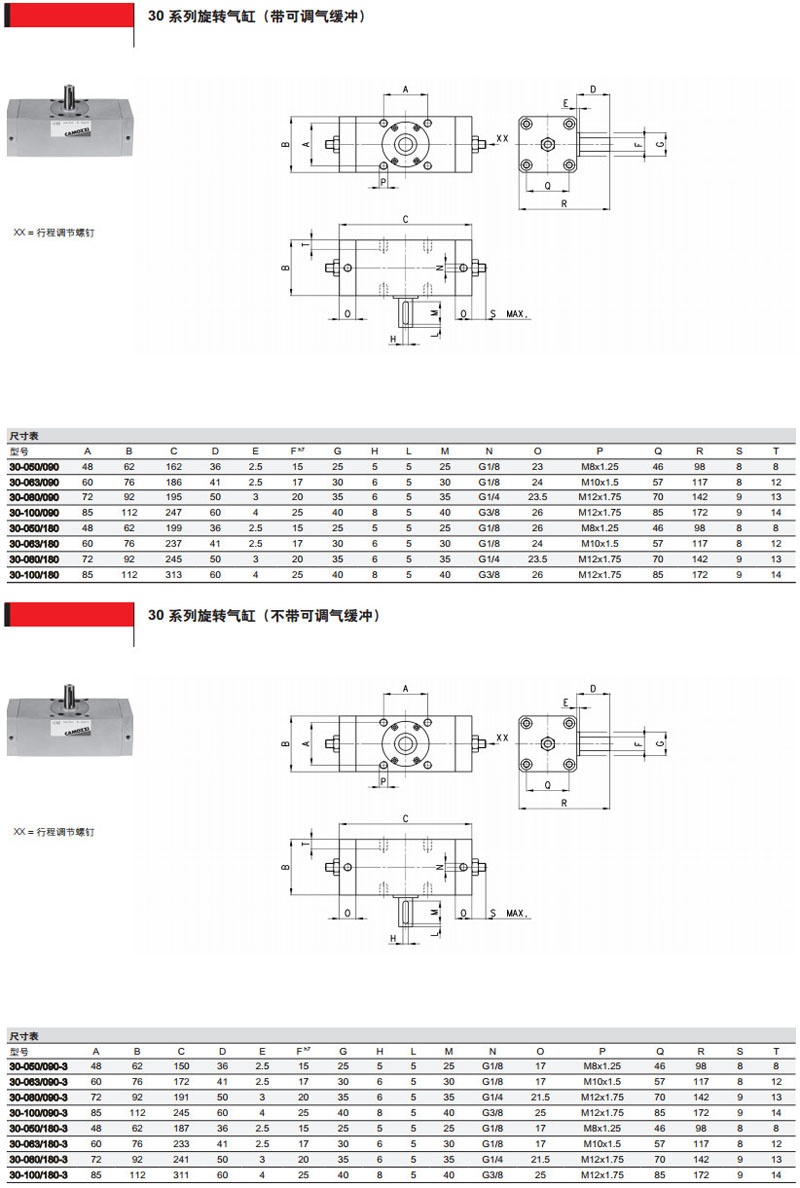 30-050/090-3,30-063/090-3,30-080/180-3,30-100/180-3,camozzi氣缸