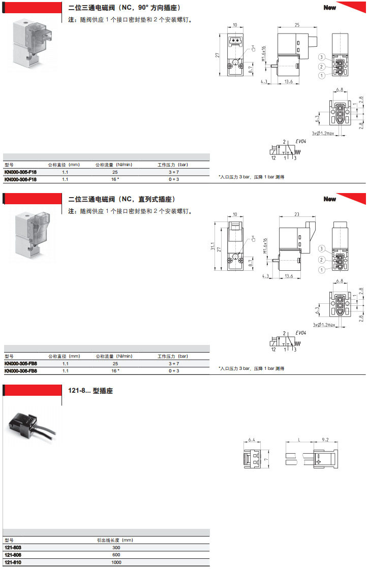 KN000-305-F12,KN000-306-F18,KN000-305-F22M,KN000-306-F28M,camozzi直動(dòng)式大流量微型電磁閥