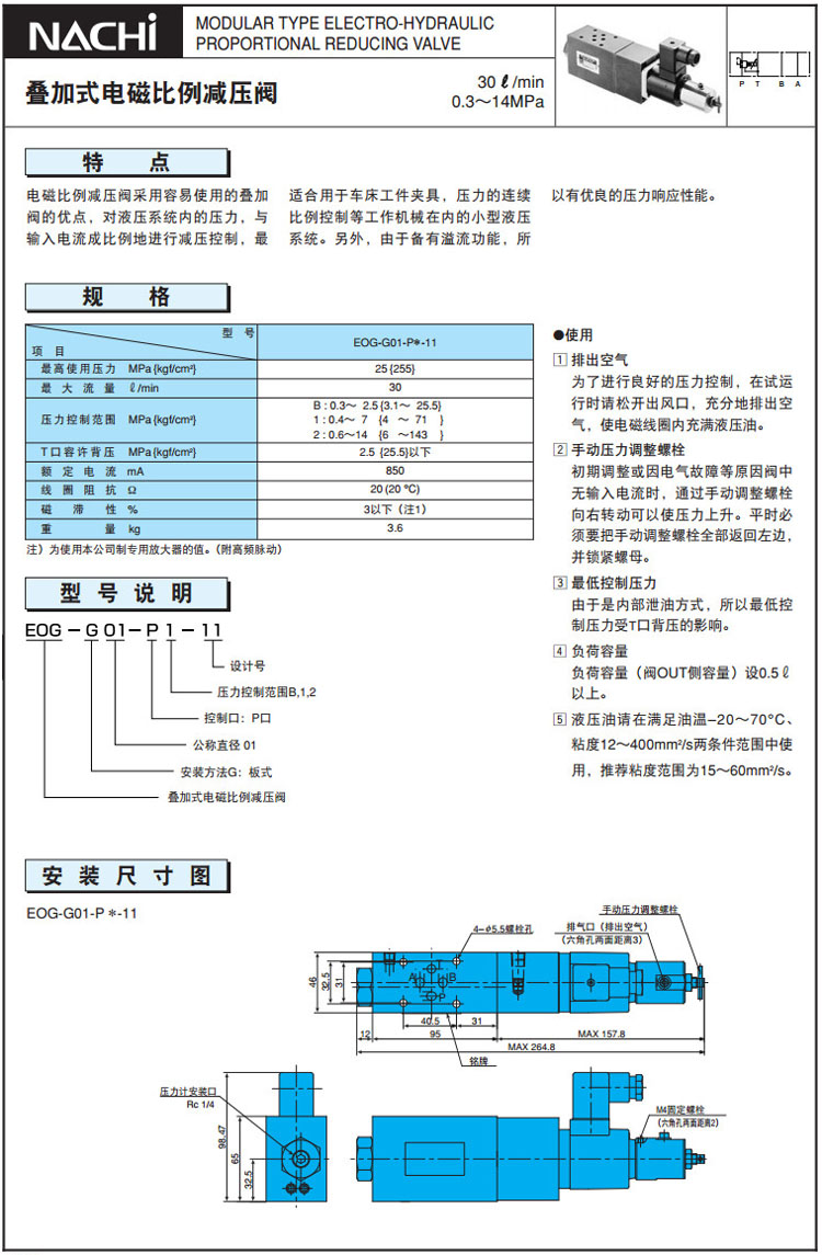 EOG-G01-PB-11,EOG-G01-P1-11,EOG-G01-P2-11,NACHI疊加式電磁比例減壓閥