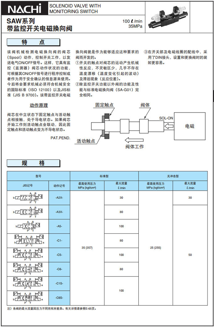 SAW-G01-A2X-GR-C1-10,SAW-G01-A2X-DF-E1-10,SAW-G01-A2X-DGR-D2-10,NACHI帶監(jiān)控開關(guān)電磁換向閥 |