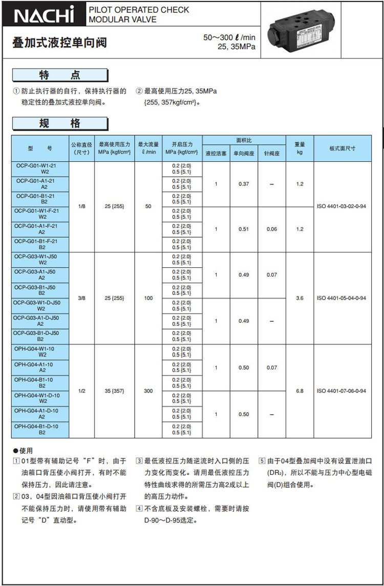 OCP-G01,OCP-G03,OPH-G04,OCP-G01-W1-21,OCP-G03-A1-D-J50,OPH-G04-W2-D-10,NACHI疊加式液控單向閥