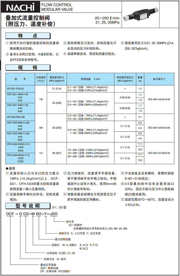 OF-G01,OF-G03,OCF-G01,OCF-G03,OFH-G04,OF-G01-P20-20,OCF-G01-B40-Y-30,NACHI疊加式流量控制閥 |