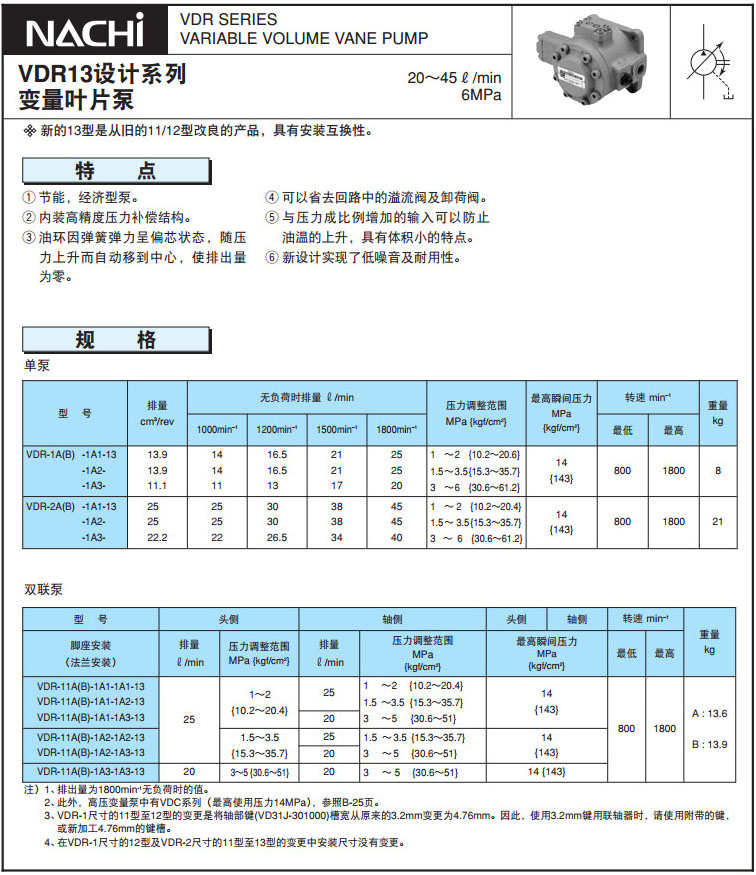 VDR-1A,VDR-1B,VDR-11A,VDR-11B,VDR-1A-1A1-13,VDR-11A-1A2-1A2-13,NACHI變量葉片泵