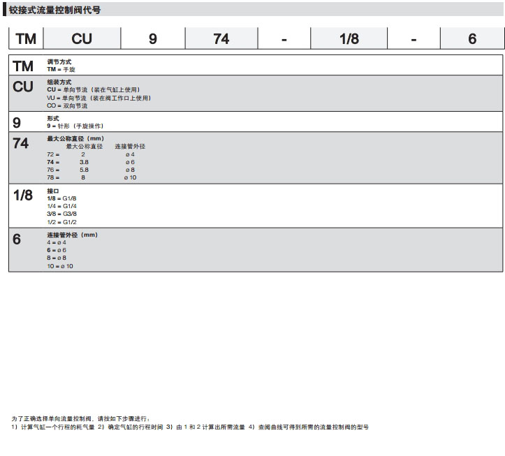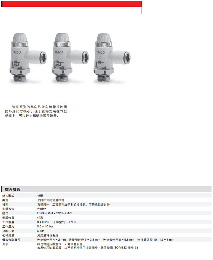 TMCU972-1/8-4,TMVU974-1/8-8,TMCO974-1/2-4,TMCU976-1/4-6,camozzi流量控制閥