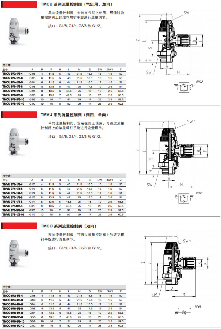 型號: TMCU972-1/8-4,TMVU974-1/8-8,TMCO974-1/2-4