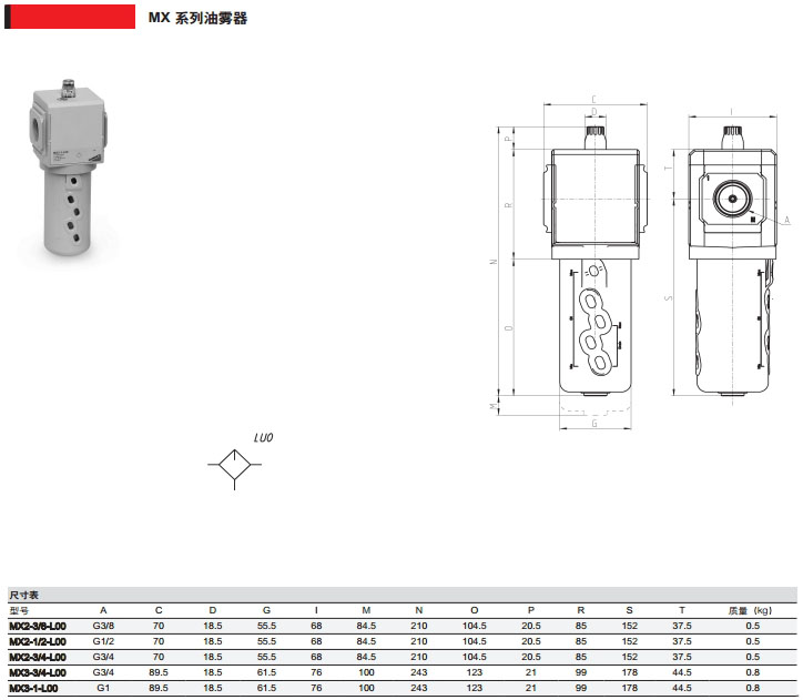 MX2-3/8-L00,MX2-1/2-L00,MX2-3/4-L00,MX3-3/4-L00,camozzi油霧器 |