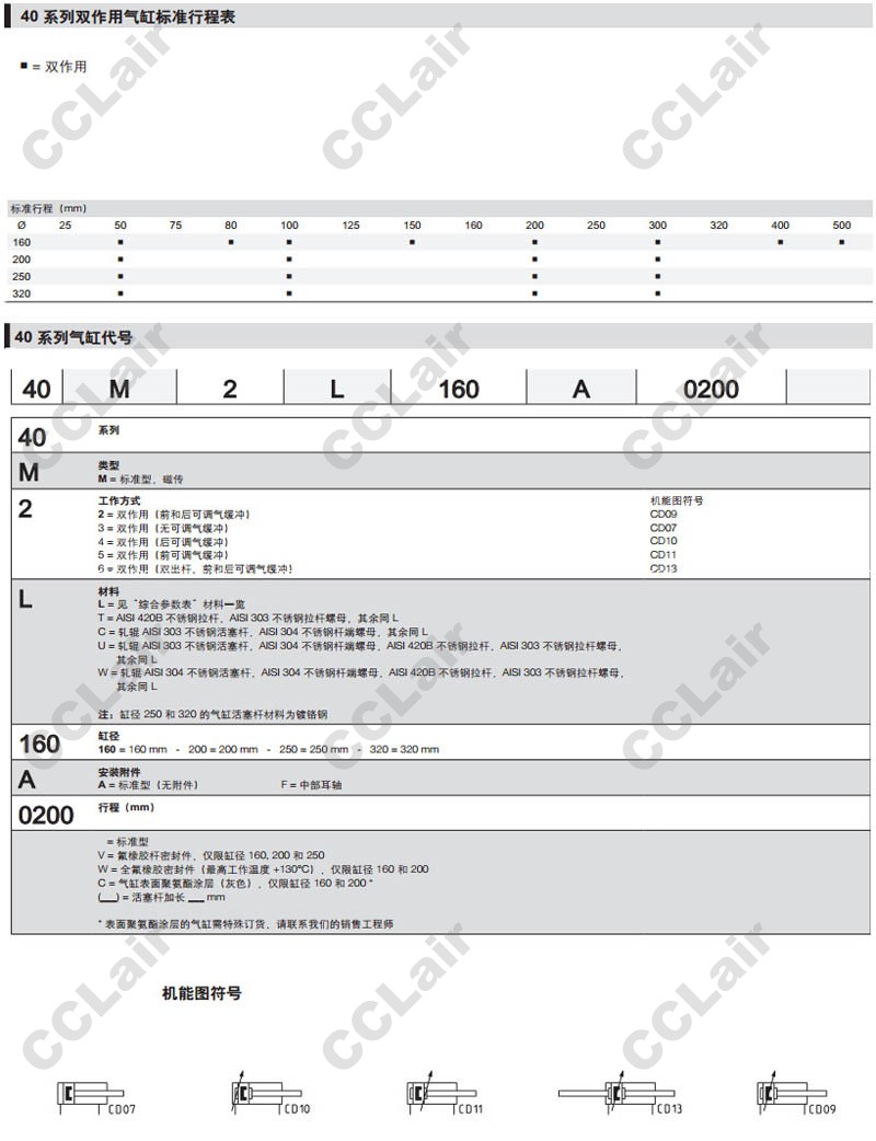 40M2L160A0200,40M2L200A0200,40M2L250A0200,40M2L320A0200,40M5L160A0200,camozzi氣缸