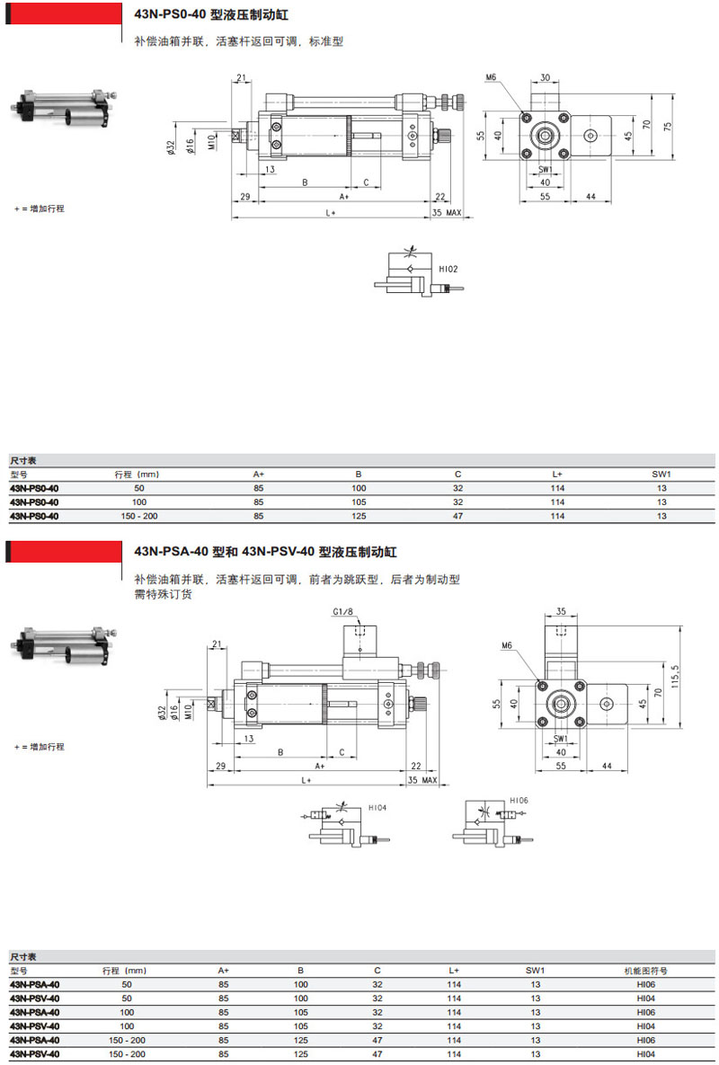 43N-LSA-40-200,43S-LTB-40-200,43N-PSV-40-200,43S-PT0-40-200,camozzi液壓制動(dòng)缸