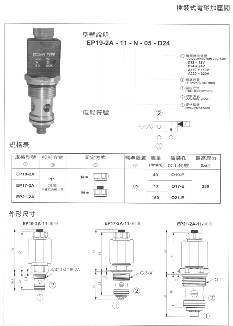 EP19-2A,EP17-2A,EP21-2A,EP19-2A-11-N-05-D12,EP17-2A-11-N-05-D12,插裝式電磁加壓閥 |
