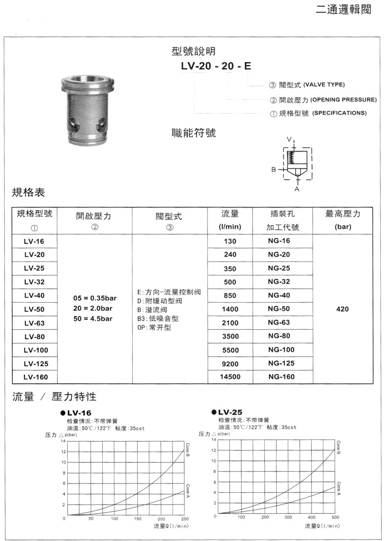 LV-16,LV-20,LV-25,LV-32,LV-40,LV-50,LV-63,LV-80,LV-100,LV-125,LV-160,二通邏輯閥 |