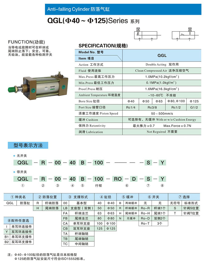 QGL-R,QGL-H,QGL-R-OO-40,QGL-H-OO-40,QGL-R-LB-40,QGL-H-FA-40,防落氣缸