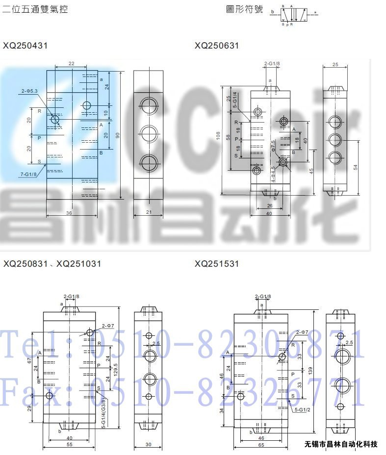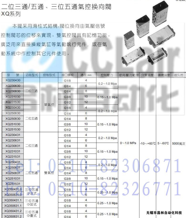 XQ250830,XQ251030,XQ251530,XQ231431,XQ231631,XQ231831,XQ231031,二位三通/五通、三位五通氣控換向閥