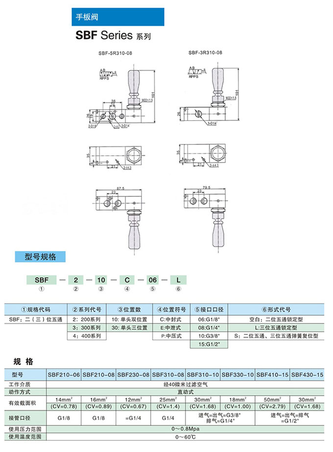 SBF210-06,SBF210-08,SBF230-08,SBF310-08,SBF310-10,SBF330-10,SBF410-15,SBF430-15,手板閥