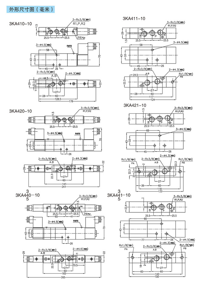 3KA411-10,3KA421-10,3KA431-10,3KA441-10,3KA451-10,先導(dǎo)式5通氣控閥 |