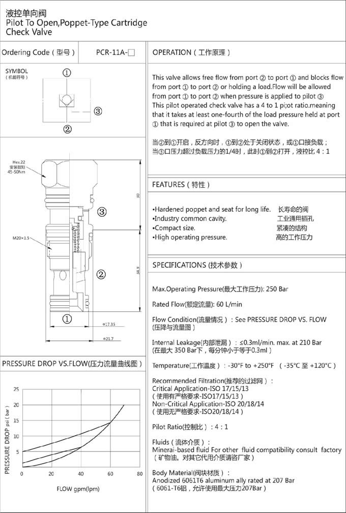 PCR-11A-20,PCR-11A-50,液控單向閥