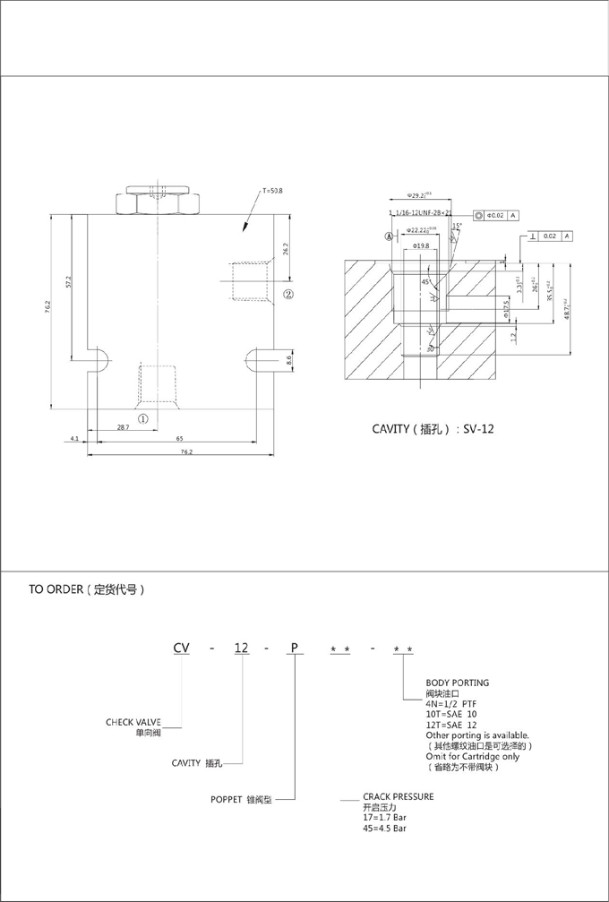 CV-12-P-17,CV-12-P-45,單向閥