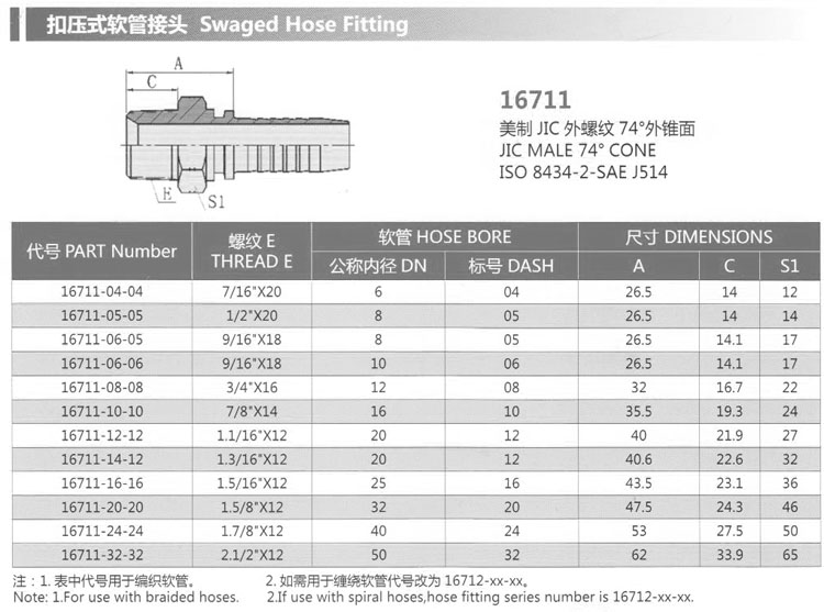 16711-04-04,16711-05-05,16711-06-05,16711-08-08,16711-10-10,16711-24-24,16711-32-32,扣壓式軟管接頭