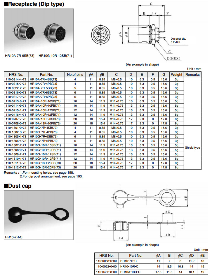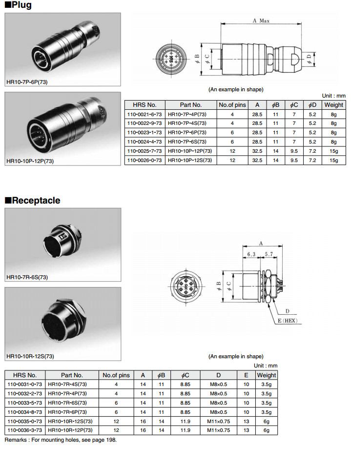 HR10G-13R-20PB,HR10-7R-C,HR10-10R-C,HR10A-7J-4S,HR10A-7J-4P,HR10A-7J-6S,HR10A-7J-6P,