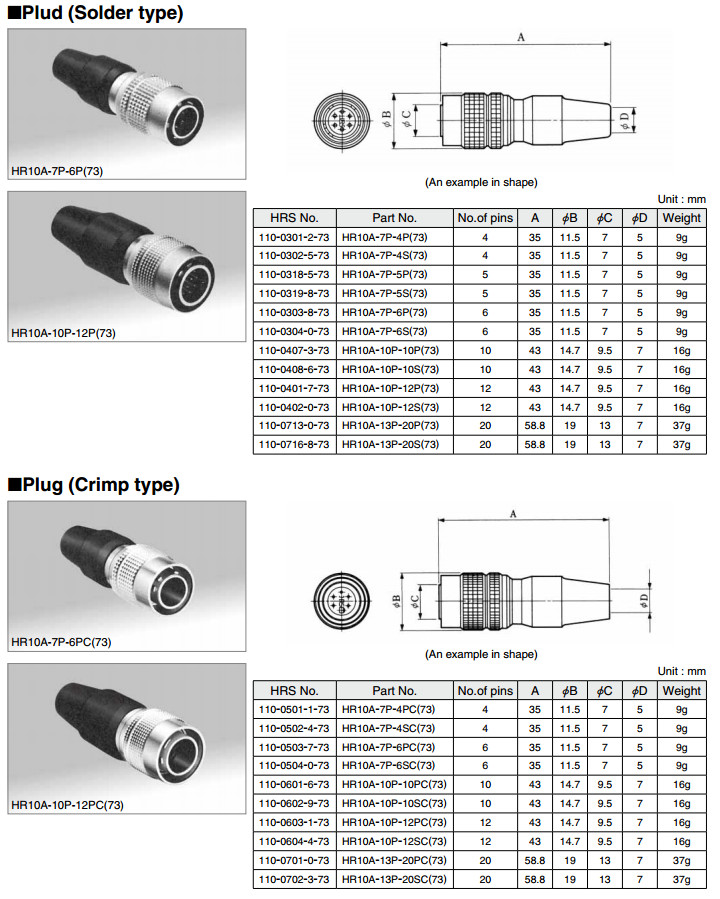 HR10-10J-12P,HR10A-7P-4S,HR10A-7P-5P,HR10A-7P-5S,HR10A-7P-6P,HR10A-7P-6S,HR10A-10P-10P,