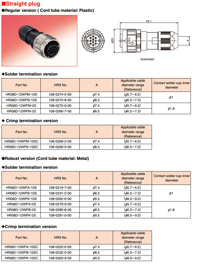 HR08D-12WPM-10S,HR08D-12WPN-2S,HR08D-12WPM-10SC,HR08D-12WPA-2S,