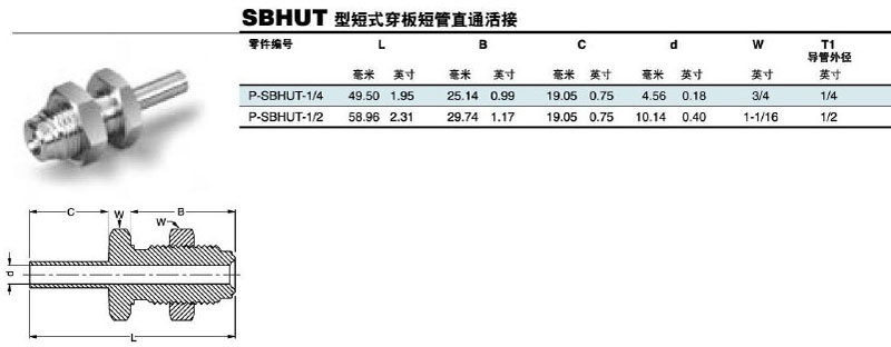 P-SBHUT-1/4,P-SBHUT-1/2,短式穿板短管直通活接頭