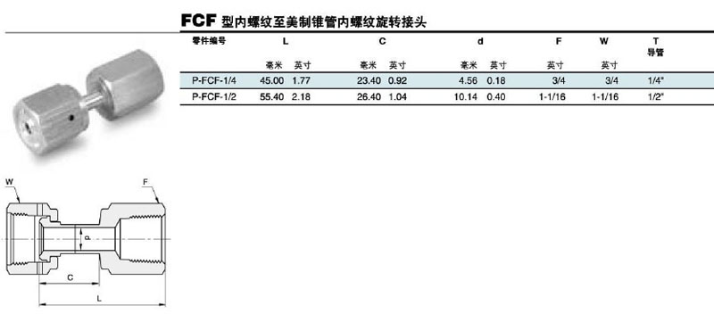 P-FCF-1/4,P-FCF-1/2,內(nèi)螺紋旋轉(zhuǎn)接頭